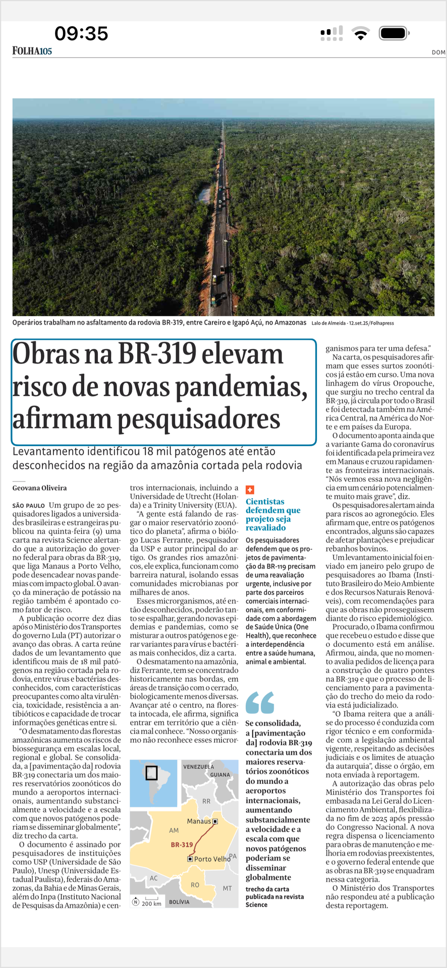 Folha de S. Paulo repercute artigo na Science